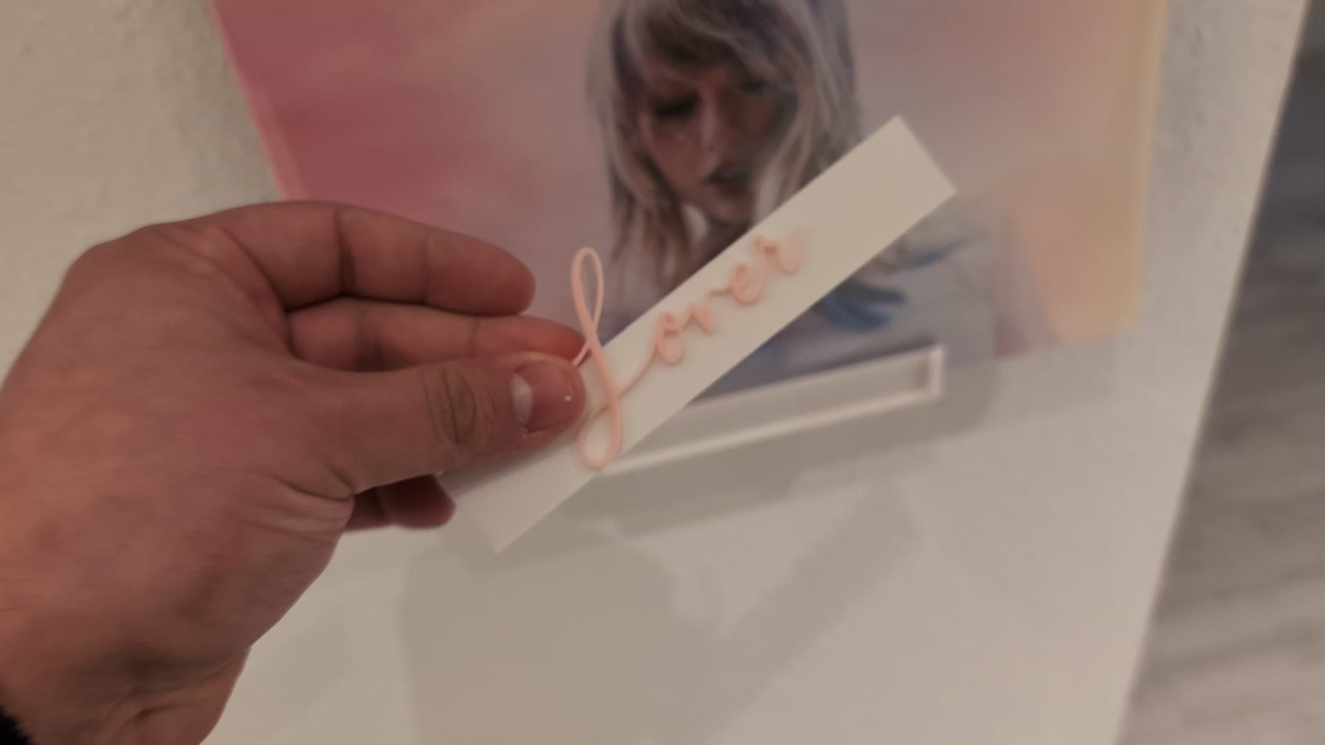 Zeige deine Liebe zu Taylor Swift mit diesem einzigartigen Wand-Vinylhalter im "Lover"-Design! Der Halter wurde hochwertig im 3D-Druckverfahren gefertigt und kombiniert transluzentes Weiß mit zartem Rosa – inspiriert vom ikonischen Lover-Album. Perfekt zum stilvollen Präsentieren deiner Lieblings-Vinyls oder als dekoratives Highlight in deinem Swiftie-Zimmer.